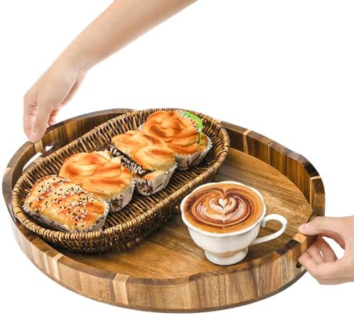 Premium Material: The wood tray is 100% made of high-quality acacia wood, with high density, not easy to crack. Cover the surface with a layer of safe paint, making cleaning and maintenance easier. The built-in handles make moving and carrying the tray becomes a breeze.
