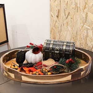 Natural Decorative Tray: The unique wood grain, warm hue, and special elliptical curvature design make your coffee table tray look extremely simple and elegant. It is a perfect complement to your home decor, bringing tradition and modern style to your living room.