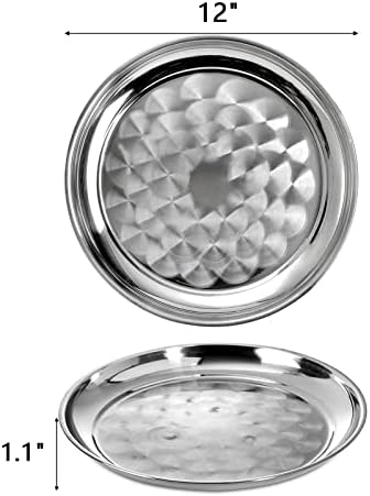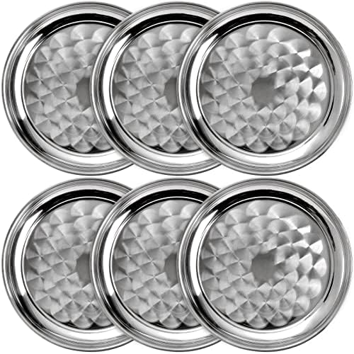 ZEAYEA 6 Pack Stainless Steel Round Tray, 12 Inch Bar Serving Tray with Swirl Pattern, Silver Display Serving Platter, Round Metal Tray for Party club