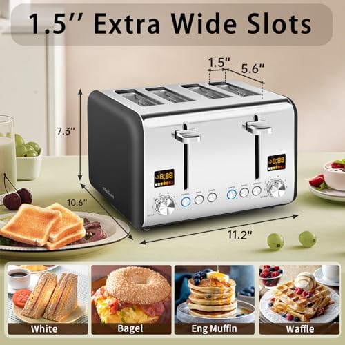 Smart Control: The 1800W toaster has 2 colorful LCD timer display, so you can clearly see shade setting and the countdown. You know when the bread will pop-up, so you can arrange time properly.