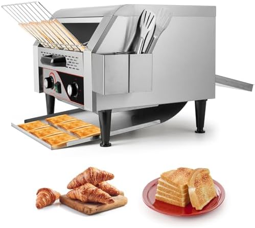 Food-Grade Safe Material: Our heavy-duty commercial conveyor toaster is made of high quality 304 stainless steel, ensuring durability and safety. It can toast about 450 slices of bread per hour, enhancing baking efficiency, is ideal choice