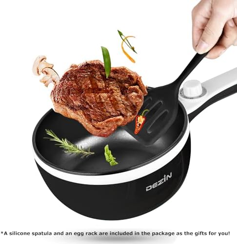 Cook & Sauté without stove anytime – In addition to the cooking function of the traditional pot, this electric pot with steamer can be also used to sauté food because it contains food grade non-stick coating. The package includes a silicone turner spatula for you as the present. You can use the appliance to sauté steak, chicken, fried rice, cook noodles, eggs, enjoy a dinner, etc. This must have item in your dorm/house or van life cooking will meet all your expectations for deliciousness!