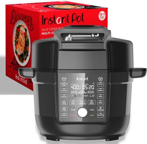 No more switching lids! The Instant Pot® Duo Crisp™ with Ultimate Lid combines the best of smart pressure cooking with air frying, using a single lid for all cooking. This Duo Crisp is simple to use, with a large LCD display that includes status messages to guide you through cooking programs. The advanced steam release is simple, with a release button on the control panel and status messages letting you know when to open and close the lid. And it’s whisper quiet, with an advanced steam release design for a simpler venting experience. With 13 different cooking functions, you can pressure cook for fast, healthy meals or slow cook for deep flavor, and then air fry for the perfect crisp. The dishwasher-safe cooking pot makes cleanup simple.
