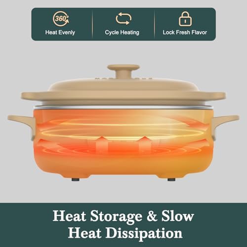 Versatile cooking pot:Heat-resistant porcelain liner is microwave or a oven safe up to 500°F. In addition, ceramic nonstick coating, free from PFAS, PFOA, PTFE, lead, and cadmium, ensures a safe and easy cooking experience.
