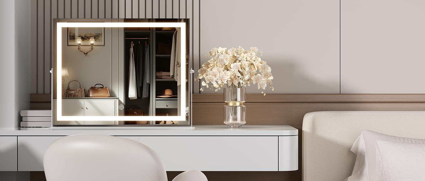 【Easy to Install】The package includes screws, wrench and instructions for installation, you just need to tighten the screws and get a stable desktop vanity mirror. Plug it in and use it.