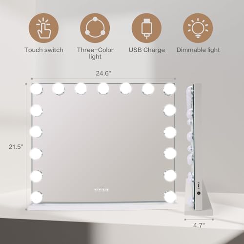 🏡 【Premium LED Bulbs】: Featuring 15 dimmable LED bulbs, the MKupView vanity mirror measures 24”(L) x 20”(H), making it perfect for professional makeup application. Illuminate your beauty effortlessly for daily wear or exquisite makeup. Additionally, a convenient USB outlet on the side enables easy phone charging.