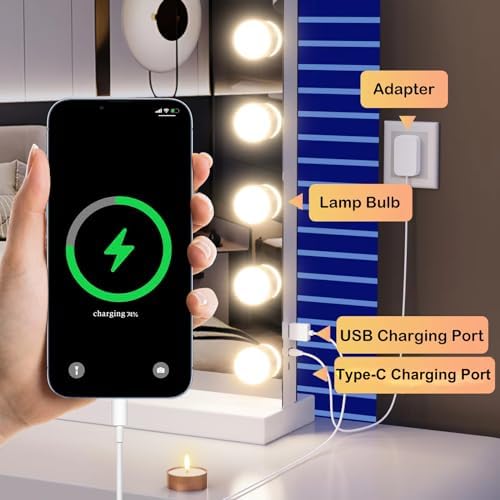 ๐๐๐+๐๐๐๐-๐ ๐๐ก๐๐ซ๐ ๐ข๐ง๐ ๐๐จ๐ซ๐ญ: Equipped with a USB charging port and TYPE-C Chargeing Port to conveniently charge your smartphone or other USB devices while using the mirror.