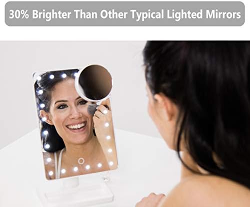 LED Illuminated Mirror 30% Brighter Than Others – The only lighted makeup mirror featuring 24 LEDs produces 30% brighter lights than 2nd Gen. 5, 000-6, 000 Kelvin white light closely simulates natural sunlight, providing color-correct lighting for your makeup.