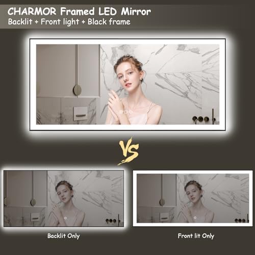【Dual Lighted Mirror with Black Frame】Different from other lighted vanity mirrors, CHARMOR led mirrors are surrounded with black aluminum metal frame. Combination of modern and retro. The front lights and backlit are much brigher than mirrors with single light strip. It’s very cost-effective and the lighting is bright enough for makeup or any other beauty cares.