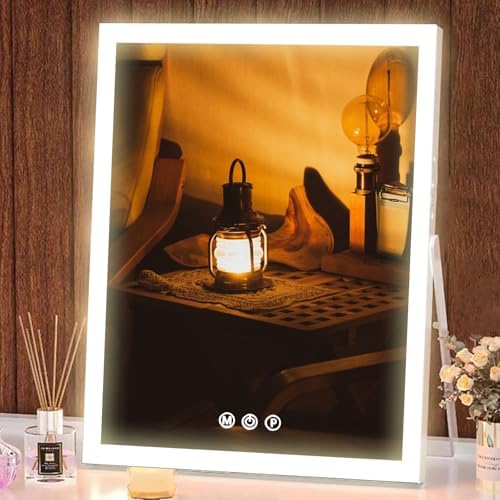 Smart Touch Control and Memory Function: The buttons on the desk mirror are super sensitive and durable. Just touch the buttons on the vanity mirror with lights screen to turn on/off the desk mirror’s light or change the color mode, button “M” adjusts the light mode and button “P” adjusts the brightness. The memory function returns the makeup mirror with lights to the brightness it was at before it was turned off