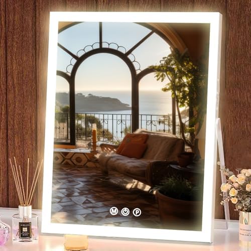 Smart Touch Control and Memory Function: The buttons on the desk mirror are super sensitive and durable. Just touch the buttons on the vanity mirror with lights screen to turn on/off the desk mirror’s light or change the color mode, button “M” adjusts the light mode and button “P” adjusts the brightness. The memory function returns the makeup mirror with lights to the brightness it was at before it was turned off
