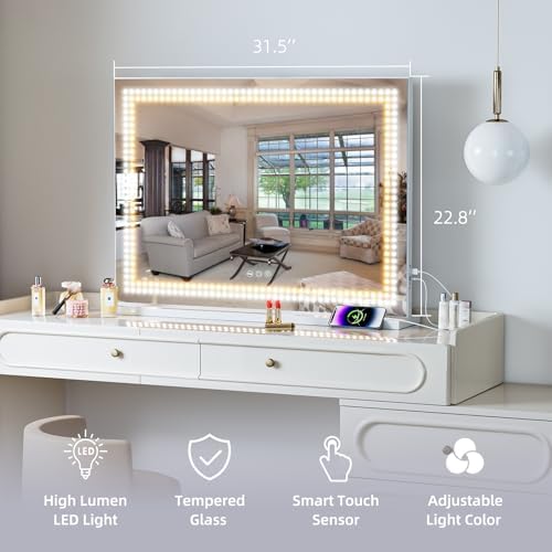 Adjustable Colors and Brightness: With brightness setting, 7000k cold white, 3000k warm light and 4500k natural light can adjust the brightness to simulate the makeup presentation effect of different occasions. Tabletop vanity mirror with memory function, turn on with your last setting, saving time