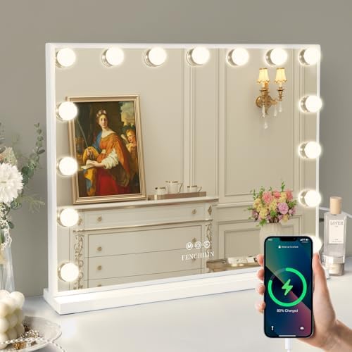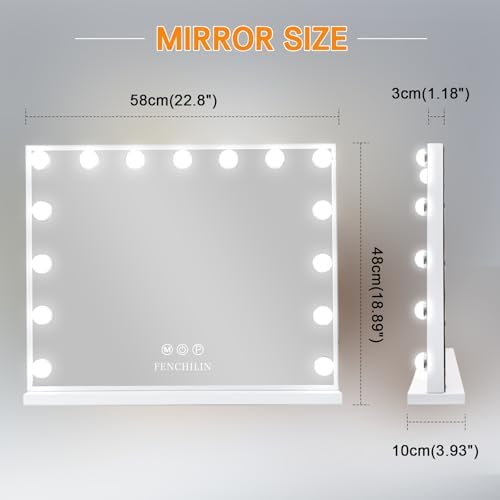 Built-in USB Charging Port: FENCHILIN vanity mirror with lights is designed with a USB charging port, lighted makeup mirror is convenient for charging your mobile phone while applying makeup, avoid the trouble of insufficient sockets.