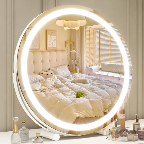 【Perfect Size & Sleek Design】 This lighted makeup mirrors has a perfect size(18″ x 18″) providing you a perfect face view. The circular shape eliminates any corners or edges that could create shadows, ensuring a consistent and even distribution of light. The circular design also adds a touch of elegance and sophistication to any room, making it the perfect addition to a vanity, dresser, or bathroom.