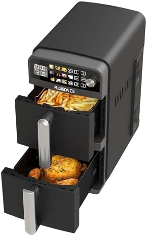 Innovation Double Design: Seamlessly switch between a generous 10-QT basket for large family feasts and two 5-QT baskets to cook different dishes simultaneously with varied settings.