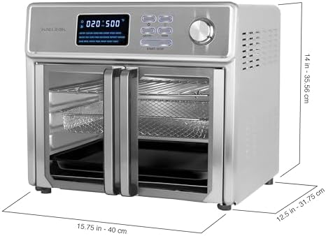 ENJOY 9 DO-IT-ALL ACCESSORIES — MAXX-IMIZE your cooking possibilities! A versatile collection of accessories includes an air frying basket, baking tray, air rack, crumb tray, bacon tray, steak tray, rotisserie spit & forks, rack handle, and rotisserie handle. Plus, a bonus cookbook featuring a diverse assortment of easy-to-follow, chef-inspired recipes