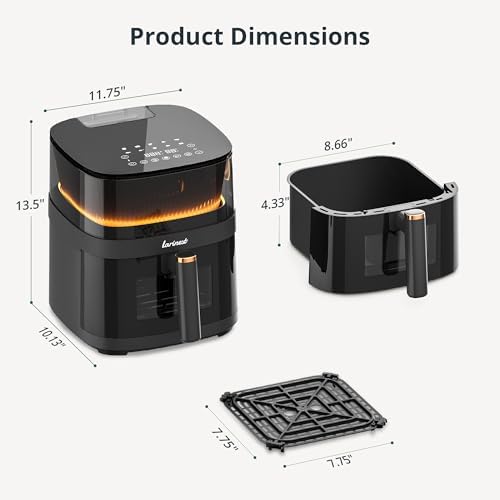 Large Capacity & Compact Size: Larinest 5.3-quart large air fryer is perfectly designed to cater to families of 2-5. This airfryer for kitchen offers ample room for cooking while the compact size takes little room on your kitchen countertop.
