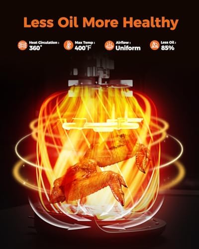 ๐๐๐ฌ๐ฌ ๐๐ข๐ฅ ๐๐๐๐ฅ๐ญ๐ก๐ข๐๐ซ ๐๐จ๐จ๐ค๐ข๐ง๐ : With Rapid Air Circulation 360ยฐ airflow to crisp food with 85% less oil, Cooks food 30% faster than traditional ovens frying. Reduced oil use for healthier meals, enjoy crispy foods without the added calories and fats
