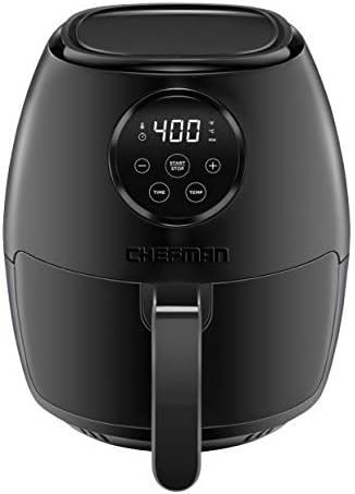 Black : Achieve the deep-fried flavor you love, without all the oil and added calories. The Chefman TurboFry Touch Air Fryer allows you to bake, fry and roast like a pro. This airfryer requires little to no oil, so there’s less of that fried oil smell lingering in the house and less fat that you’re consuming. Its large 3.6-quart capacity and flat basket gives you the ability to cook enough for a hungry crowd all at once. Skip the microwave! Reheat soggy leftovers in the air fryer to return them to their original texture. Make better-for-you fries that are just as crispy and tasty, roast chicken thighs, or heat up leftovers for a quick and easy meal. The temperature control with 60-minute timer automatically shuts off once food is done, so you never have to worry about burning or drying out your food. Its space saving basket is removable and dishwasher safe for easy clean-up, so you’ll have more time to dream up your next air-fried meal!