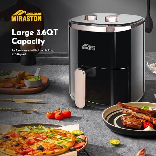 【Compact Size, Spacious Capacity】Despite its 3.6QT/3.5L capacity, MIRASTON Air Fryer is small and easy to store, making it ideal for any kitchen size. The sleek design and easy-to-use digital touchscreen interface complement any kitchen decor.