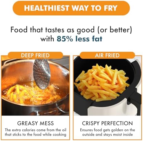 HEALTHY LIVING LESS FAT – Enjoy guilt-free food that fries to perfection with virtually no oil! Enjoy the same crispy texture as traditional frying with up to 85% less fat. Especially for those who are conscious of healthy living and staying slim.