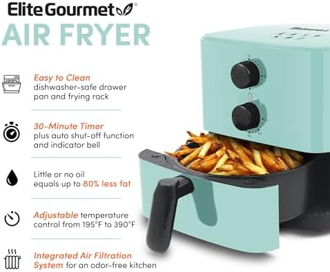 The Elite Gourmet Oil-Free Air Fryer has a variety of functions to handle a wide array of cooking tasks. With its easy to use Timer and Temperature control knobs, you can fry, cook, or even bake your favorite meals and snacks with ease! Not only can you cook foods without the mess of oil but you can cook faster which saves you time and energy. Unlike most conventional deep fryers, the Oil-Free Air Fryer’s unique vapor system combined with circulating hot air will automatically make foods crispier and of course healthier without oil.