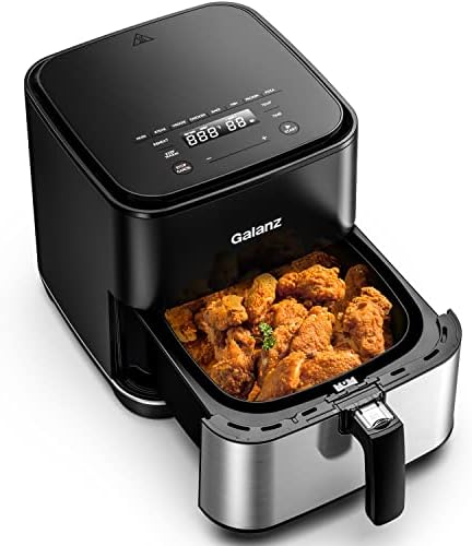 Galanz Oil Free Electric Digital Air Fryer with Touch Control Panel, 8 Pre-Programmed Settings, Shake Alert, and Removable Non-Stick Fry Basket, 5.8 Quart, 1450 Watts, Stainless Steel