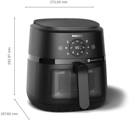 Transform your kitchen with the Philips 2000 Series Air Fryer NA220/00, designed to redefine how you cook. Utilizing advanced RapidAir technology, this air fryer delivers crispy, golden-brown results with up to 90% less fat*, promoting healthier cooking habits and with the cooking window, watch while your food is cooking and see when it’s done to perfection. The intuitive touchscreen interface offers easy navigation through 13 cooking functions, ensuring precise control over your meals. Its 4.4 quarts (4.2L) capacity caters to families and dinner parties alike, while the cooking window allows you to monitor dishes as they cook. Simplify your kitchen routine with Philips’ innovative approach to modern cooking.